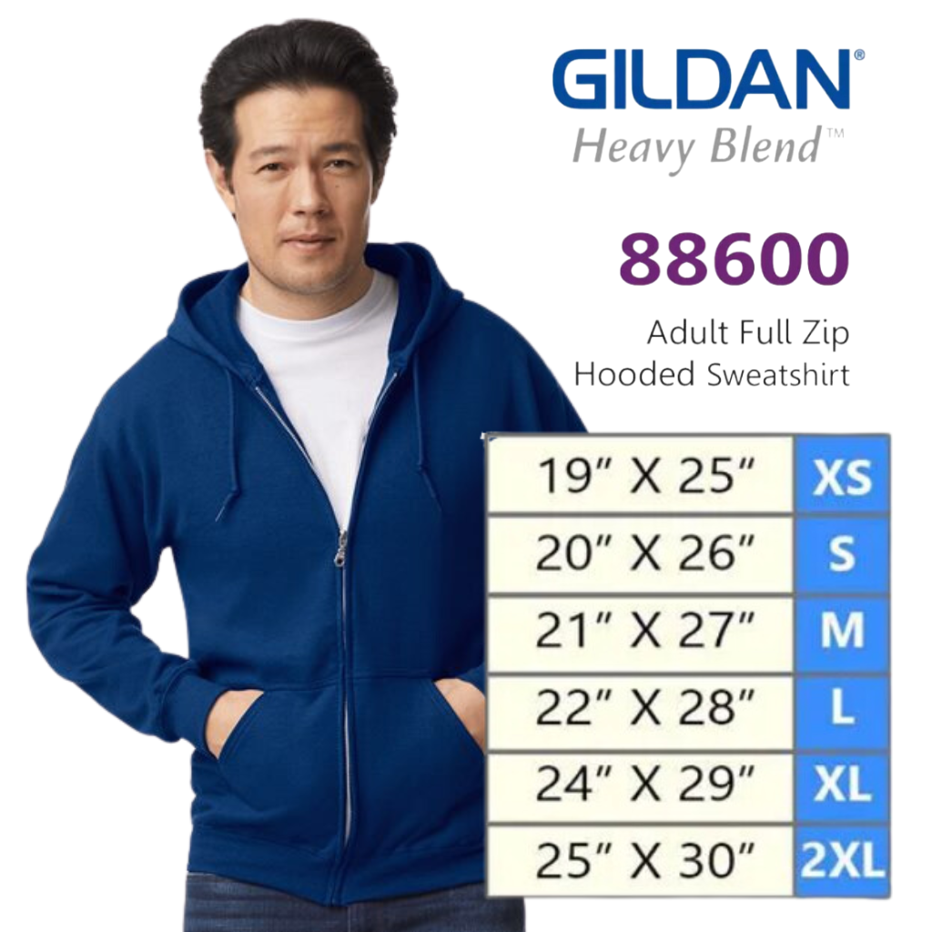 Item Name: Gildan Heavy Blend Hooded Sweatshirt w/ zipper Adult